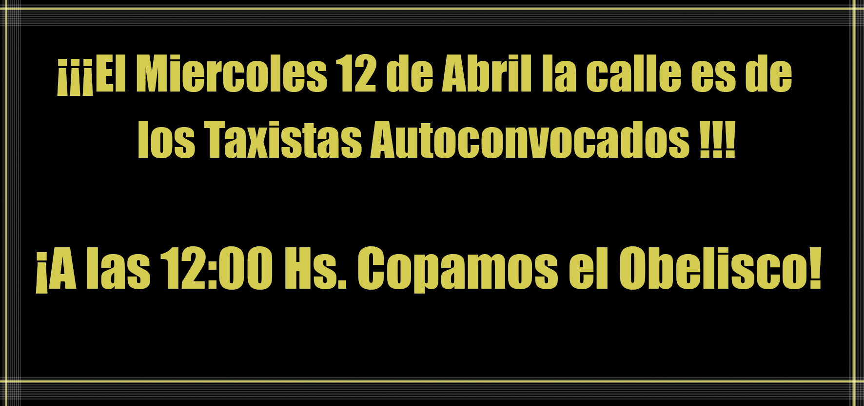 Esto está en manos de nosotros, de vos que estás leyendo, de los que trabajamos 12 horas o más todos los días recorriendo la ciudad. No esperen que otro lo haga, la manifestación de las entidades programada para el 11 de Abril fue cancelada, así que eso nos deja como los únicos que vamos a salir a reclamarle al gobierno la desidia de este último año.